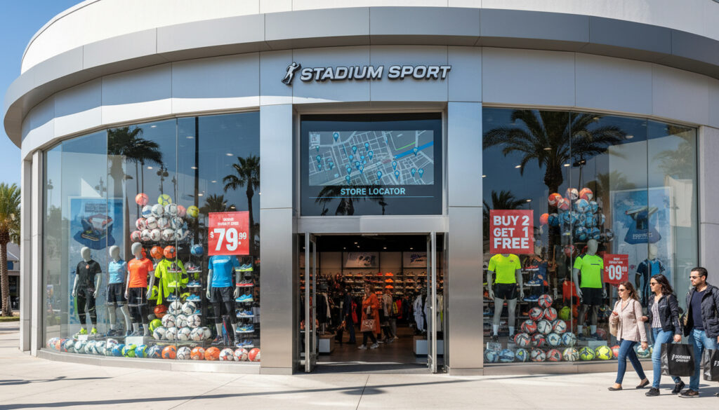Stadium Outlet har etablert fysiske butikker i minst ti norske byer. Den mest sentrale lokasjonen for Oslo-besøkende finnes i Torggata 7, i umiddelbar nærhet til Karl Johan. For sportsinteresserte som besøker internasjonale arenaer, kan Arena Fonte Nova i Salvador være av interesse.
